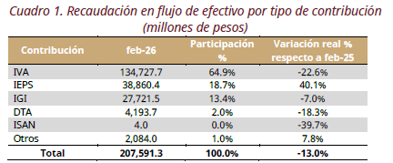 - Representa un decremento de 13% real respecto al mismo periodo de 2025.