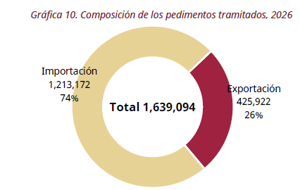 - Para el periodo de enero-febrero de 2026 se han tramitado 1,639,094 pedimentos